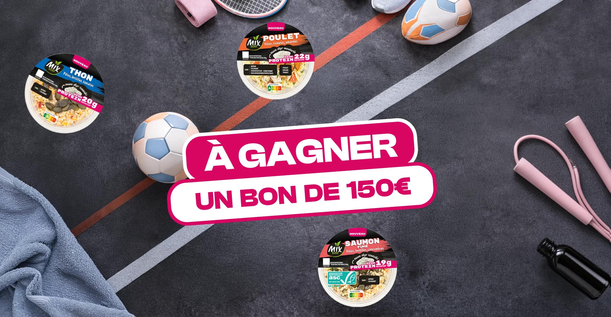 La Société Organisatrice met en jeu les trois recettes de sa nouvelle gamme High Protein ainsi qu’une carte cadeau d’une valeur de 150€ dans un magasin de sport.