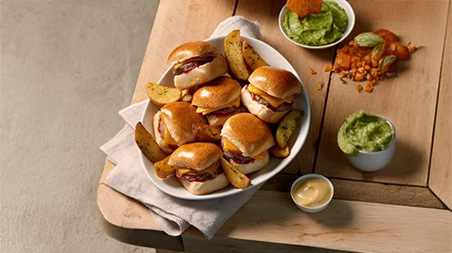 Nos burgers apéritifs sont préparés avec un pain maison à la farine française, nature ou coloré avec des poudres 100 % naturelles. Une touche originale et authentique qui mise sur des ingrédients simples et de qualité pour des moments à partager.